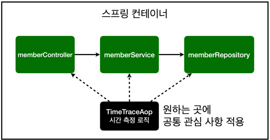- 회원가입, 회원 조회등 핵심 관심사항과 시간을 측정하는 공통 관심 사항을 분리한다.