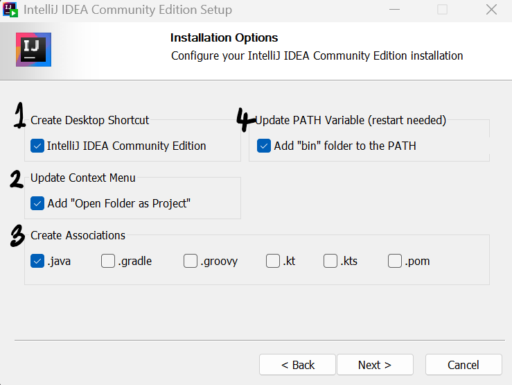 ④ Update PATH variable(restart needed) : 윈도우 환경변수에 자동으로 추가할 수 있도록 체크