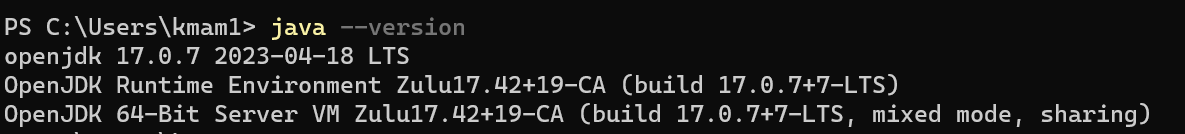 명령프롬트창에서 java --version을 입력해서 정상 설치되었는지 확인하고